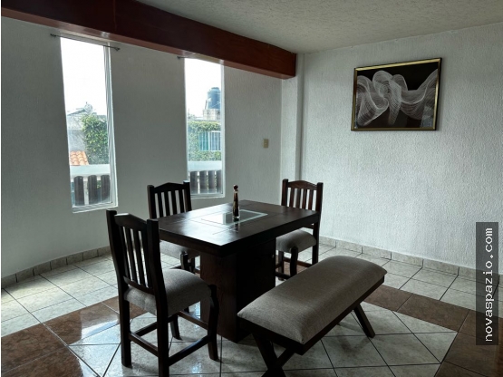 Departamento amueblado en renta, con excelente ubicación, a unos metros de Calzada al Pacífico; a 5 min de Av. Colón; a 10 min de las escuelas de medicina, odontología y del Hospital Mónica Pretelini y Tollocan. El edificio cuenta con 6 departamentos, planta baja y 3 pisos, estacionamiento techado, cisterna, area de tendido, tanque de gas estacionario para cada departamento. Ubicado en Primer Piso (departamento no.1) con vista al frente, ideal para pareja jóven, estudiantes, profesionistas, una o dos personas. El departamento se entrega amueblado: sala con sillones, comedor con mesa y sillas, mesa rectangular; cocina equipada con cocineta y refrigerador; baño completo con cancel de aluminio en regadera y espejo; 2 recámaras con closets, cama, burós y tocador. Todo el departamento cuenta con lámparas de techo y cortinas. Cuarto de lavado con boiler, lavadero e instalación para lavadora. No incluye ropa de cama, ni trastes o accesorios en la cocina. La renta incluye pago de agua, limpieza de áreas comunes y estacionamiento techado para un auto. NO ACEPTA MASCOTAS NI MENORES DE 14 AÑOS. El departamento se renta amueblado, los muebles y la decoración pueden variar. Requiere póliza jurídica y obligado solidario.